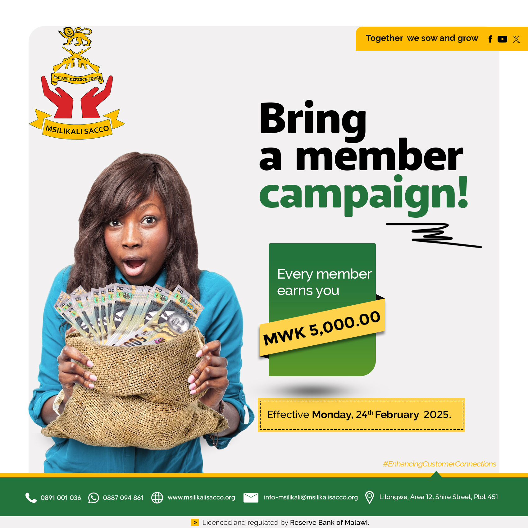 Msilikali Savings and Credit Cooperative (MSACCO) is an affiliate of the Malawi Union of Credit and Cooperatives (MUSCCO). It was registered in March 2017 by the Registrar of Cooperatives in the Ministry of Trade and Industry.